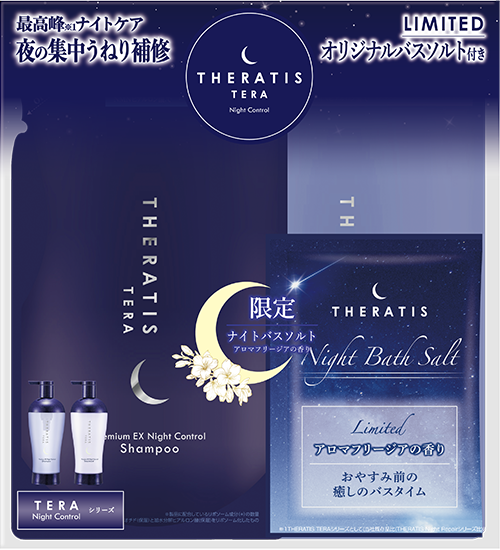 「ナイトリペア」、「テラ プレミアム EX ナイト モイスト」の3シリーズからオリジナルバスソルト付きの